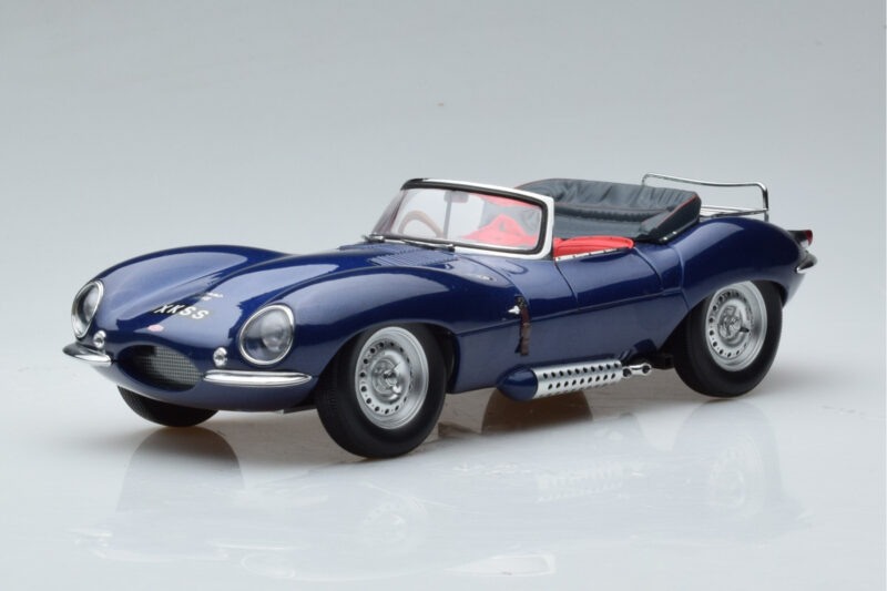 The Jaguar XKSS Albastru AUTOart 1:18 is crafted from Metal. Die-cast zinc alloy body with detailed plastic parts, rubber tires, and high-quality paint finish. Die-cast models are known for their weight, durability, and realistic feel.