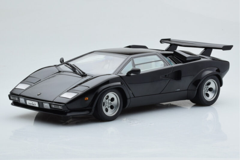 The Lamborghini Countach LP5000S Negru AUTOart 1:18 is crafted from Metal. Die-cast zinc alloy body with detailed plastic parts, rubber tires, and high-quality paint finish. Die-cast models are known for their weight, durability, and realistic feel.