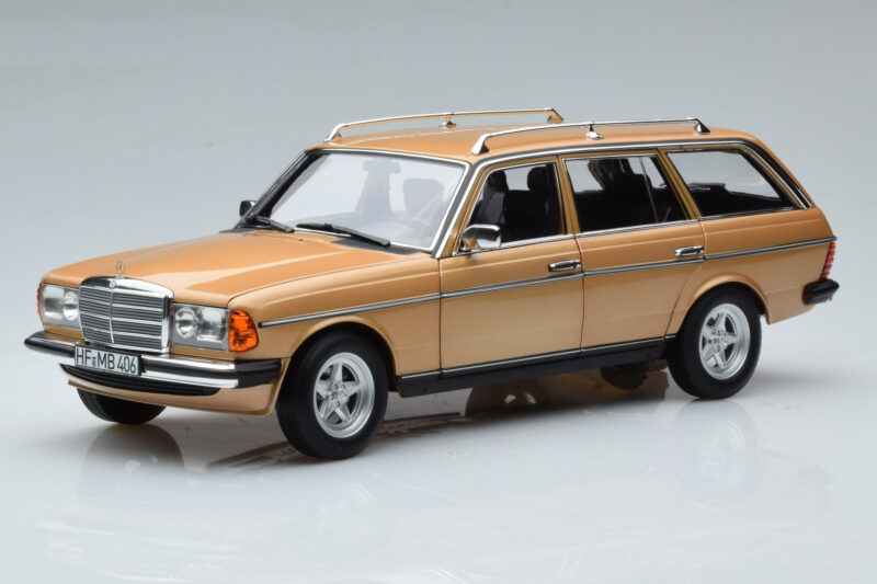 The Mercedes 200T S123 AMG Package Bej Norev 1:18 is crafted from Metal. Die-cast zinc alloy body with detailed plastic parts, rubber tires, and high-quality paint finish. Die-cast models are known for their weight, durability, and realistic feel.