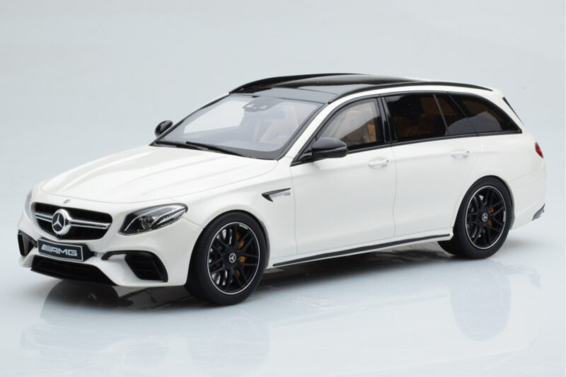 A 1:18 scale model measures approximately 25-28 cm (approximately 10-11 inches). The Mercedes AMG E63 S S213 T-Model Alb GT Spirit 1:18 is perfect for display in a glass cabinet or on a shelf.