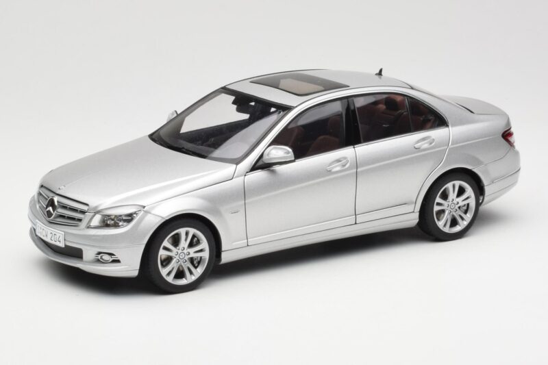 The Mercedes C-Class W204 Avantgarde Argintiu AUTOart 1:18 is crafted from Metal. Die-cast zinc alloy body with detailed plastic parts, rubber tires, and high-quality paint finish. Die-cast models are known for their weight, durability, and realistic feel.