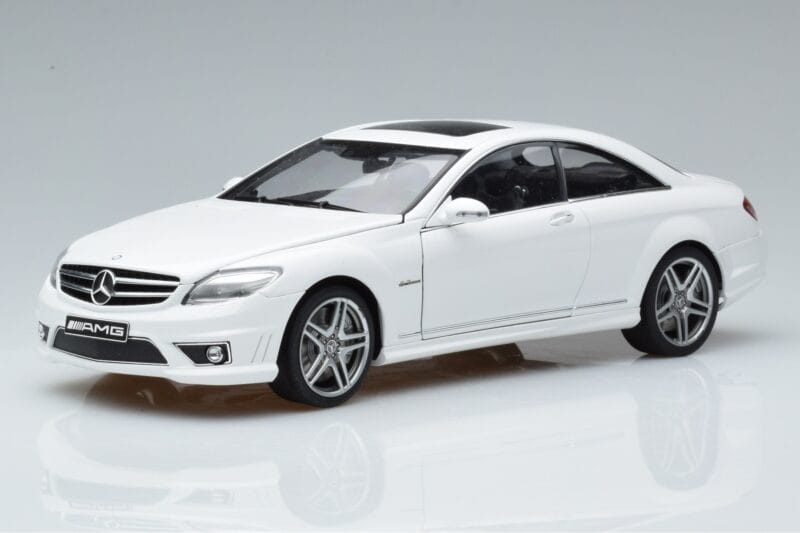 The Mercedes CL63 AMG C216 Alb AUTOart 1:18 is crafted from Metal. Die-cast zinc alloy body with detailed plastic parts, rubber tires, and high-quality paint finish. Die-cast models are known for their weight, durability, and realistic feel.