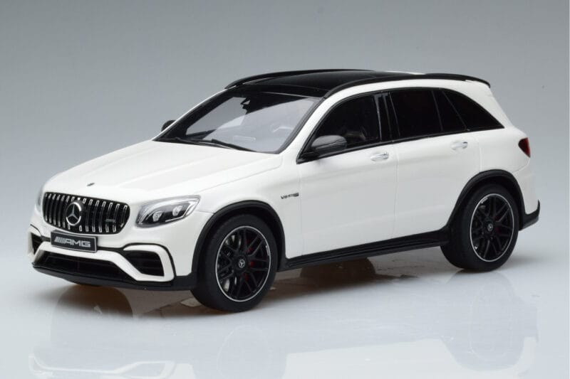 A 1:18 scale model measures approximately 25-28 cm (approximately 10-11 inches). The Mercedes GLC 63 AMG X253 Alb GT Spirit 1:18 is perfect for display in a glass cabinet or on a shelf.