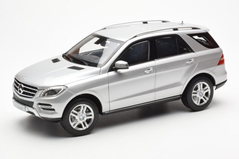 The Mercedes M-Class W166 Iridium Argintiu Metalizat Minichamps 1:18 is crafted from Metal. Die-cast zinc alloy body with detailed plastic parts, rubber tires, and high-quality paint finish. Die-cast models are known for their weight, durability, and realistic feel.