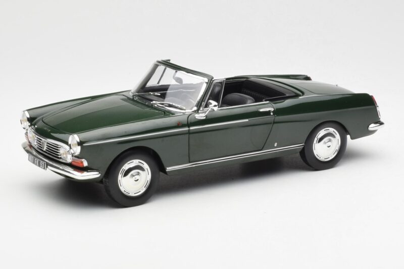 The Peugeot 404 Cabriolet Antique Green Ediție Limitată Norev 1:18 is crafted from Metal. Die-cast zinc alloy body with detailed plastic parts, rubber tires, and high-quality paint finish. Die-cast models are known for their weight, durability, and realistic feel.