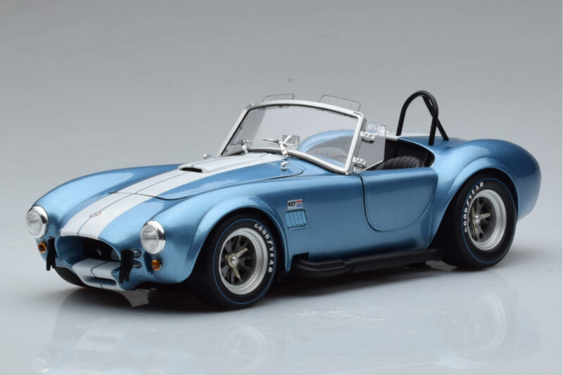 The Shelby Cobra 427 S/C Albastru Deschis Kyosho 1:18 is crafted from Metal. Die-cast zinc alloy body with detailed plastic parts, rubber tires, and high-quality paint finish. Die-cast models are known for their weight, durability, and realistic feel.