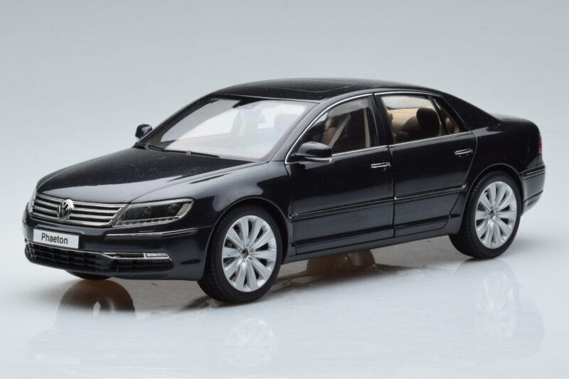The Volkswagen Phaeton V6 Mazeppa Gri Kyosho 1:18 is crafted from Metal. Die-cast zinc alloy body with detailed plastic parts, rubber tires, and high-quality paint finish. Die-cast models are known for their weight, durability, and realistic feel.